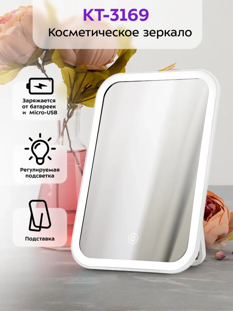 Это зеркало — идеальный выбор для девочек, желающих совершенствовать свои навыки макияжа. Питание осуществляется от батареек, что делает его мобильным и удобным для использования как дома, так и в поездках. Зеркалом Kitfort пользуются не только любители, но и профессиональные визажисты, благодаря его надежности и качеству.