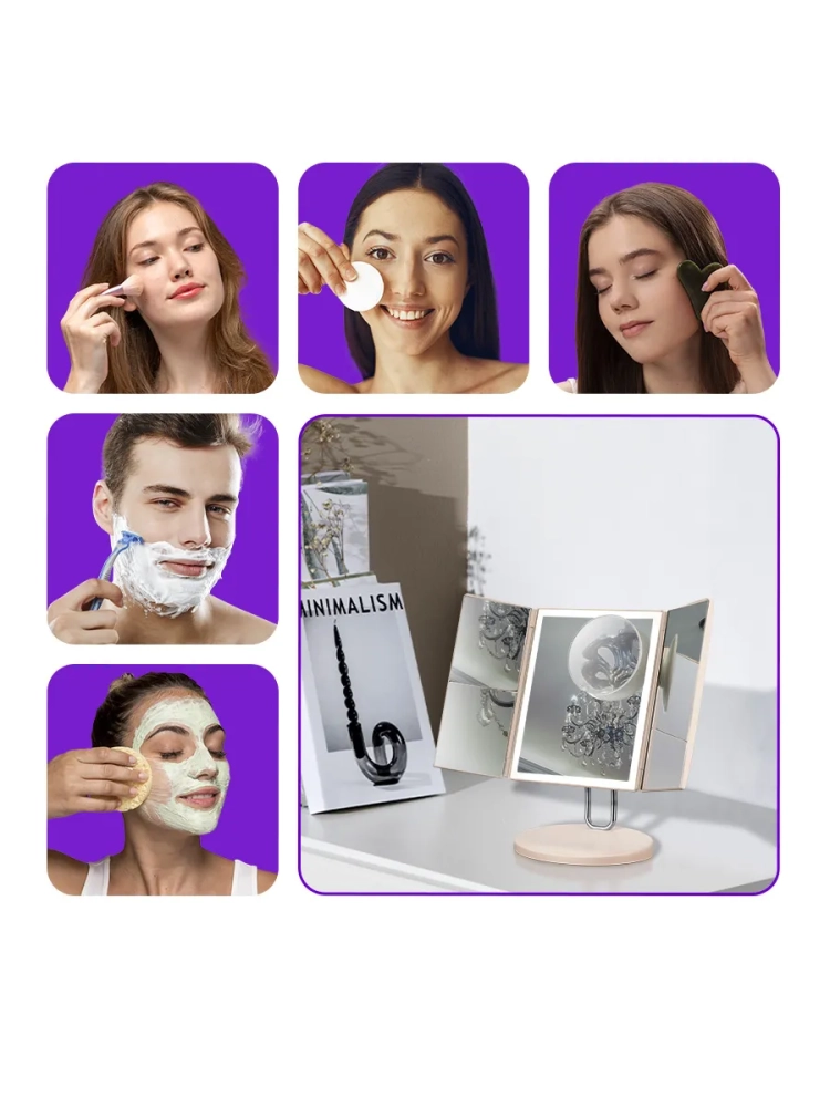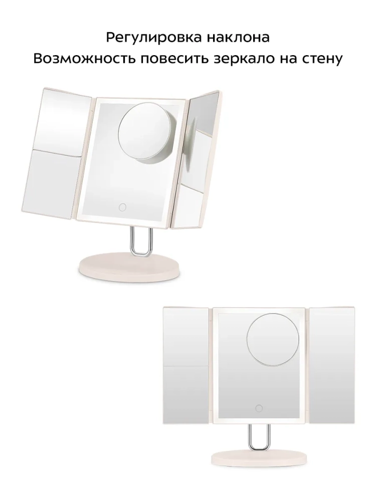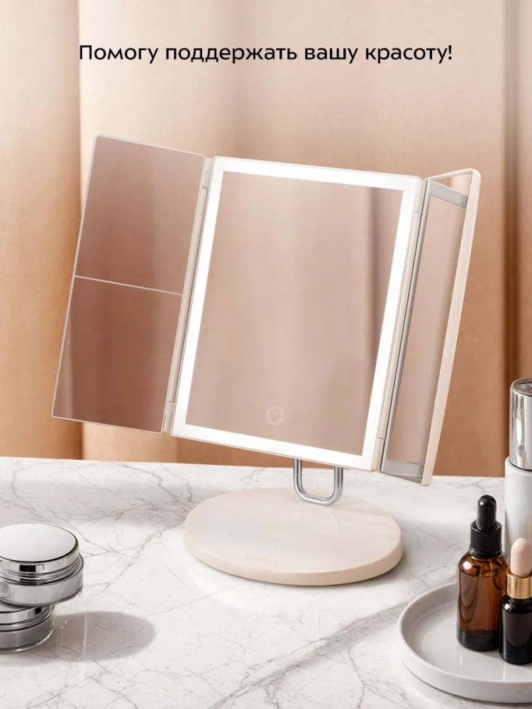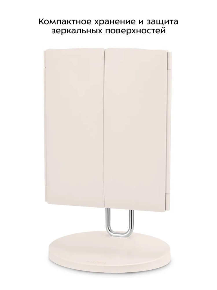 Зеркальные поверхности расположены на трех сторонах, две из которых являются поворотными и складываются книжкой. Благодаря такой конструкции вы можете хранить устройство компактно и безопасно — все зеркальные поверхности будут закрыты и защищены от царапин.