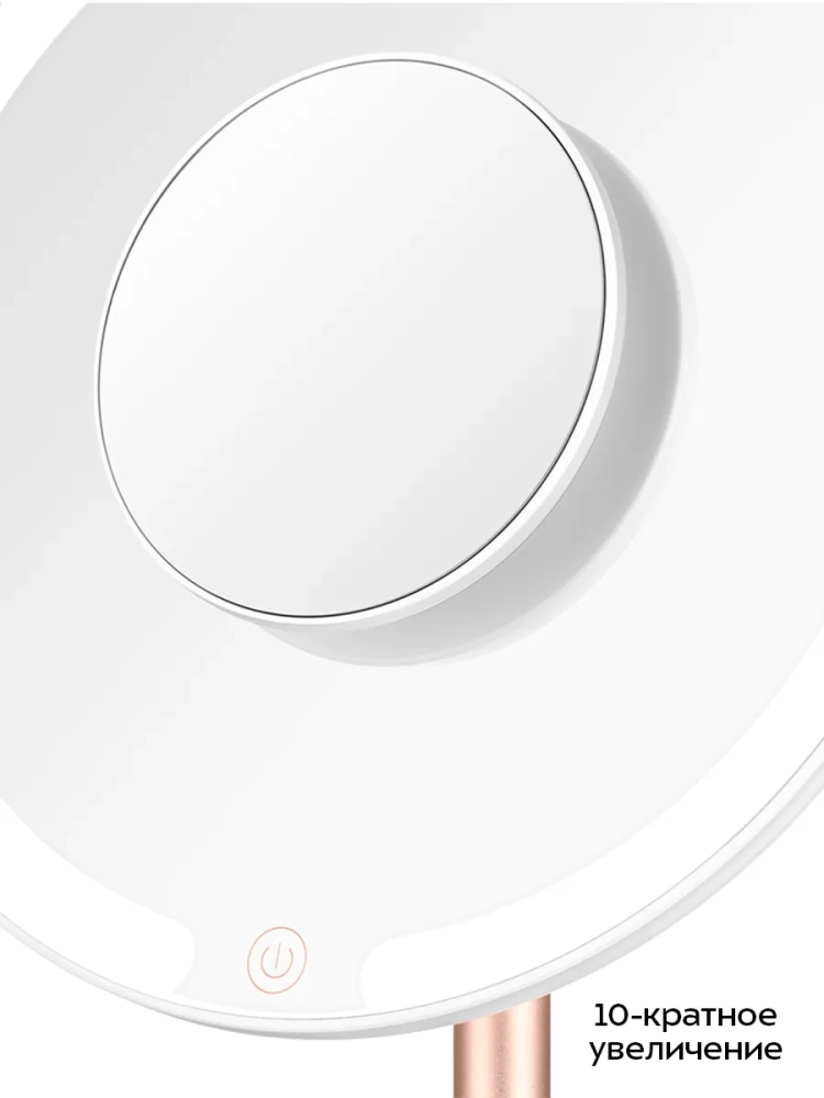 Маленькое зеркало с 10-кратным увеличением, которое крепится на магниты на центральную часть основного зеркала, поможет разглядеть даже самые мелкие детали. Благодаря креплению маленького зеркала ваши руки останутся свободными, вам удобнее будет наносить макияж.