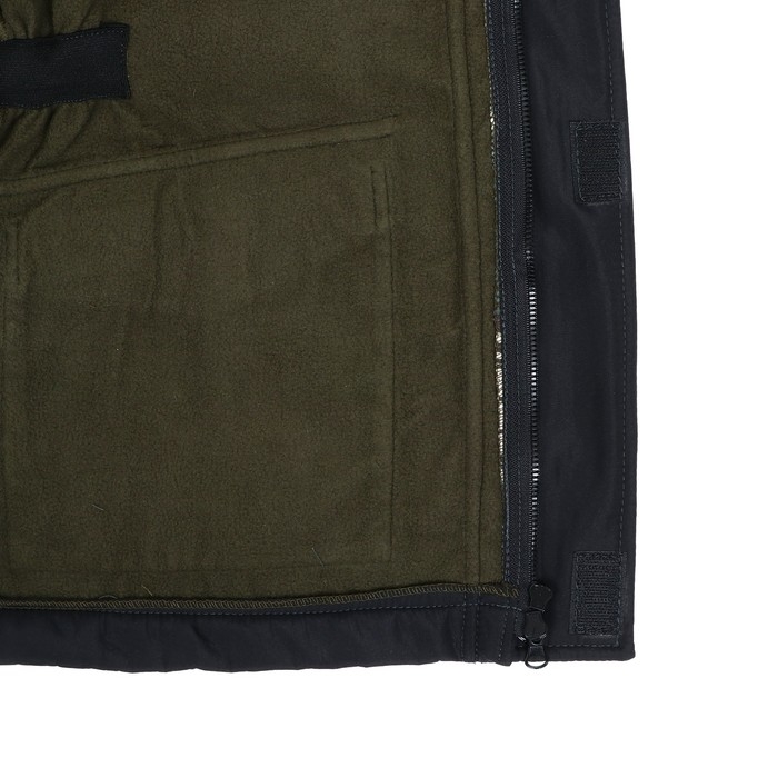 Костюм также оснащен 6 функциональными карманами для хранения необходимых принадлежностей, а также капюшоном, регулируемым по объему, для защиты от ветра и дождя. Широкий пояс брюк с шлевками обеспечивает надежную фиксацию костюма на теле, а флисовая подкладка весом 180 г. гарантирует тепло и комфорт в температурном режиме от 0 до +5°C.