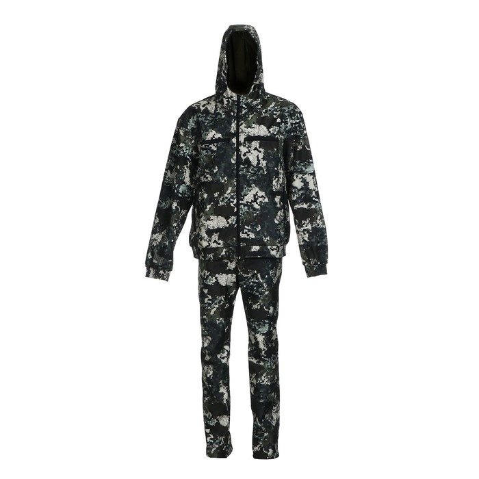 Костюм состоит из куртки и брюк, выполненных из ткани Dewspo fleece bonding (100% ПЭ), которая обладает водоотталкивающими свойствами благодаря DWR пропитке (durable water repellent).