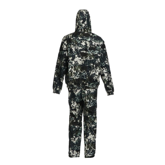 Костюм состоит из куртки и брюк, выполненных из ткани Dewspo fleece bonding (100% ПЭ), которая обладает водоотталкивающими свойствами благодаря DWR пропитке (durable water repellent).