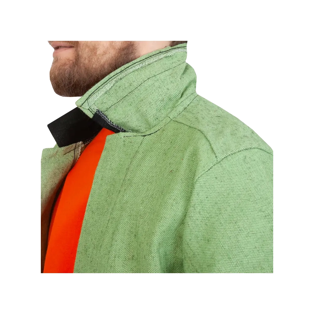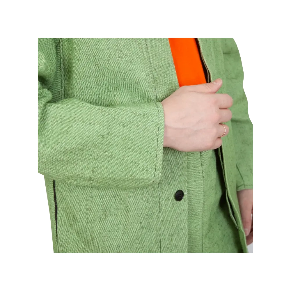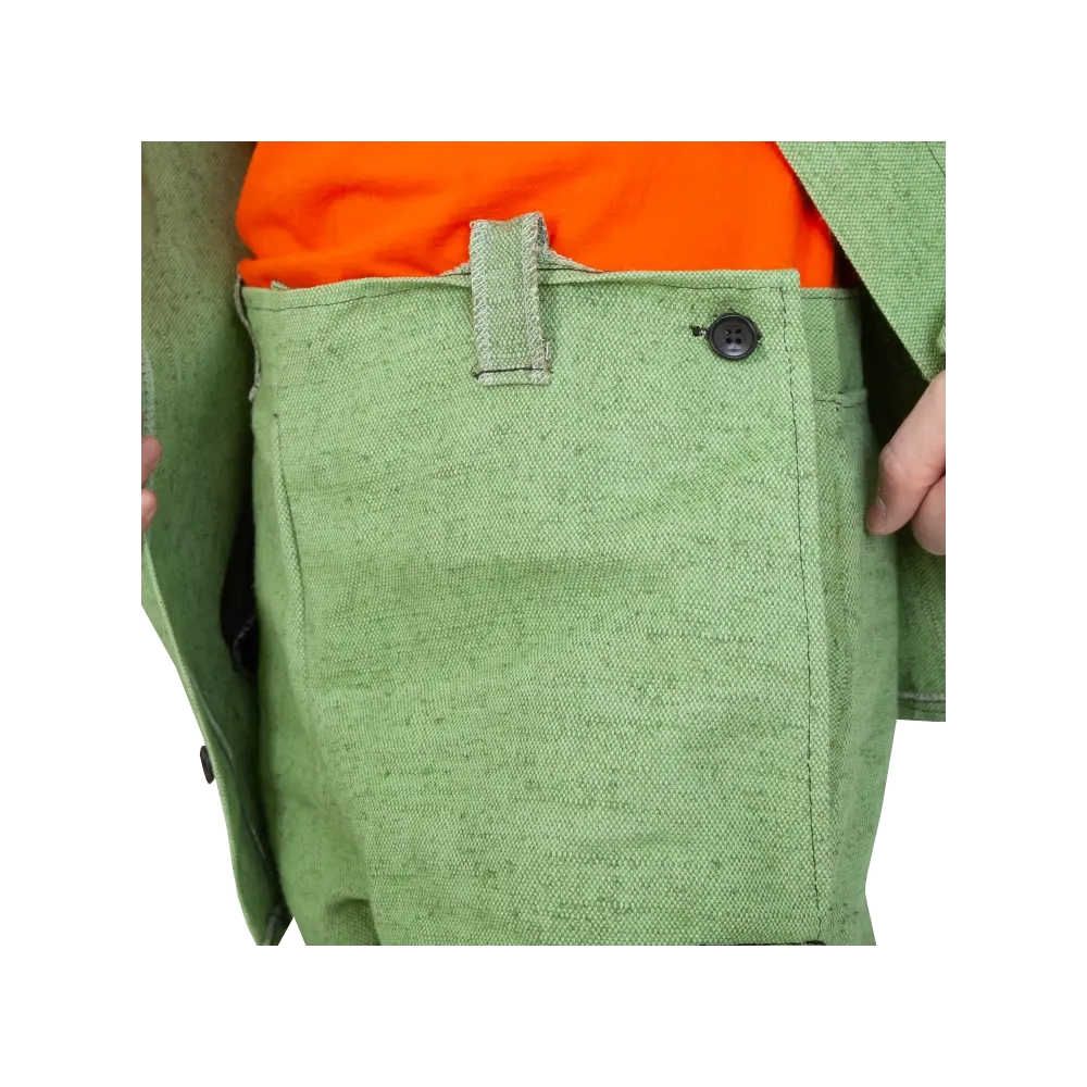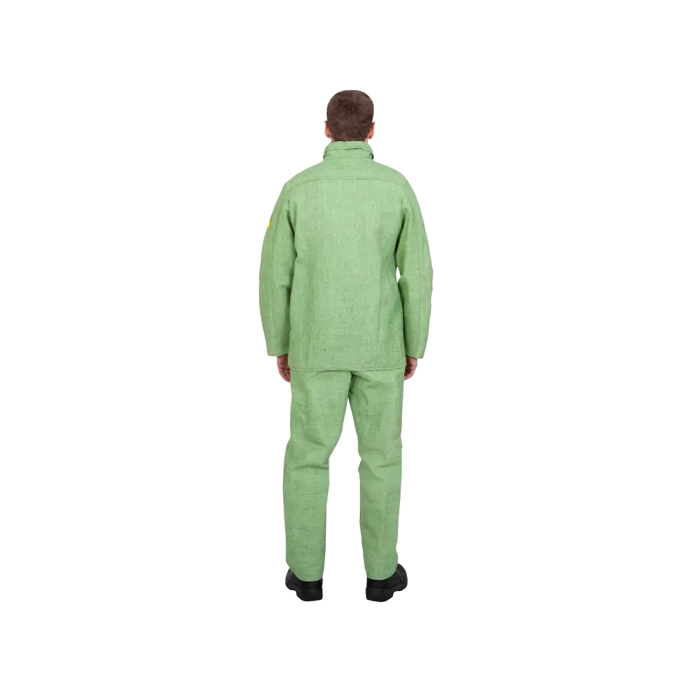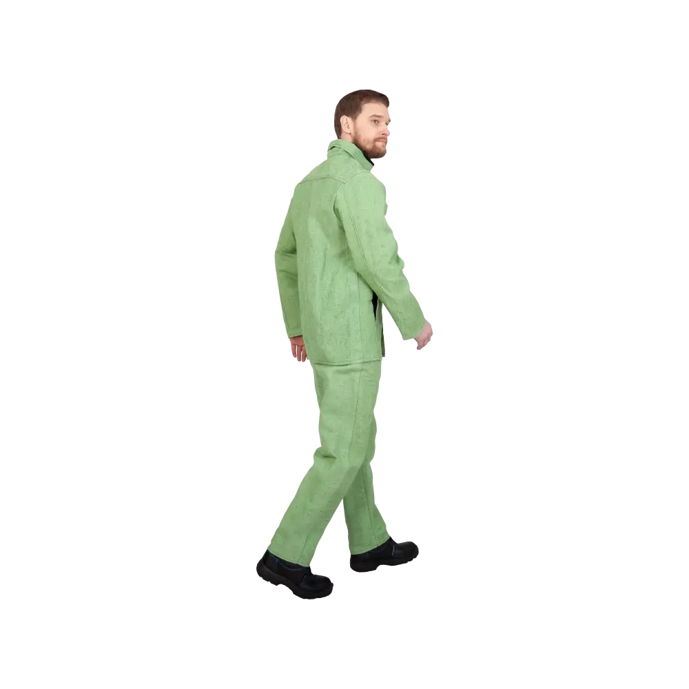 Костюм выполнен из огнеупорного высококачественного брезента повышенной плотности. Дополнительные накладки применяются в местах наибольшего внешнего воздействия на костюм. Прямой покрой куртки и брюк, а также отсутствие открытых частей тела позволяют исключить попадание брызг металла на тело сварщика и на складки его спецодежды.