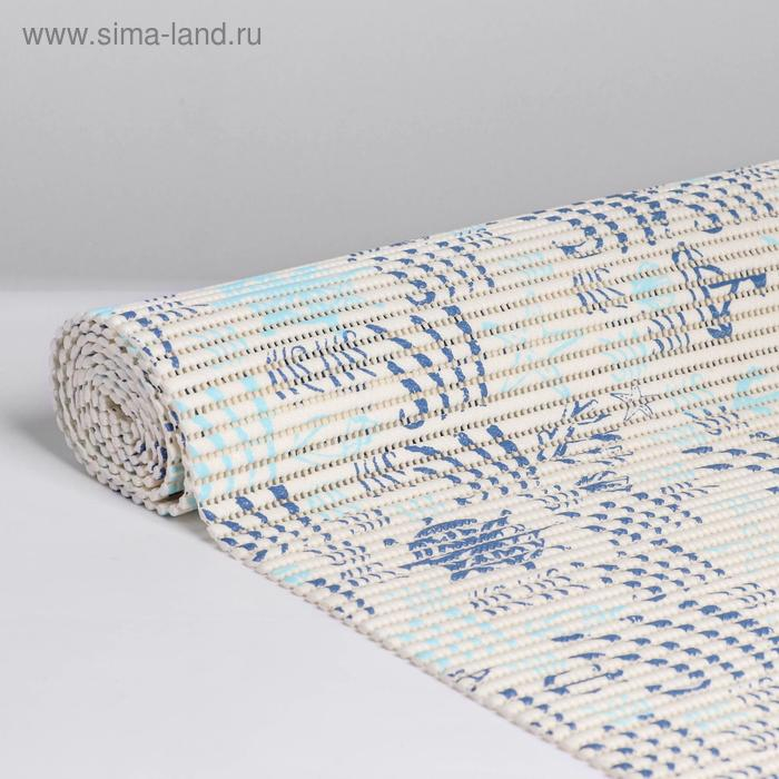 Коврик для ванной комнаты «Морские знаки», ширина 65 см, рулон 2 м, цвет белый