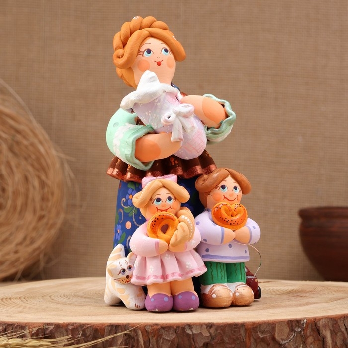 Ковровская игрушка "Барышня с детьми лето", керамика