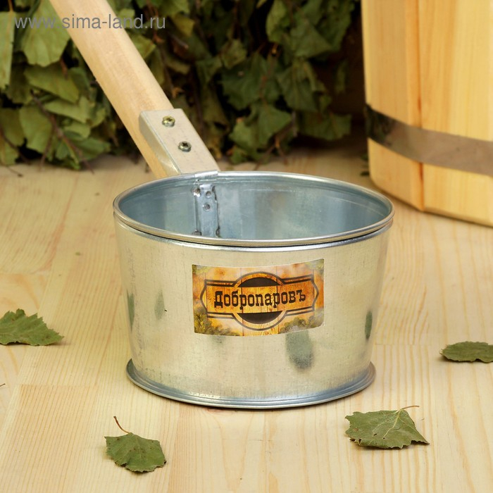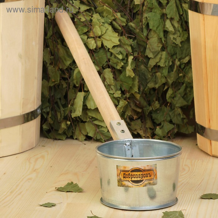 Ковш для бани из оцинкованной стали, 0.7л, 50 см, с деревянной ручкой, "Добропаровъ"