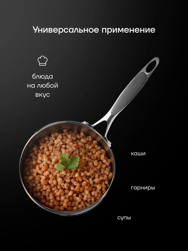 Сотейник подходит для варки и тушения мяса и птицы, супа, яиц, каши, соусов, макарон, круп, картофеля и других овощей. Маленький ковш может использоваться на всех типах плит: индукционные, электрические, керамические, газовые. Разрешена мойка в посудомоечной машине.