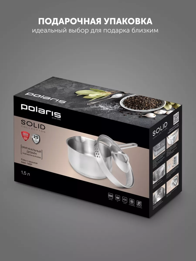 Весь товар Polaris разрабатывается совместно с европейскими инженерами и соответствует европейским сертификатам качества. Мы позаботились о вашем здоровом питании, поэтому используем только качественные и безопасные материалы на которые даем вам гарантию - 25 лет.