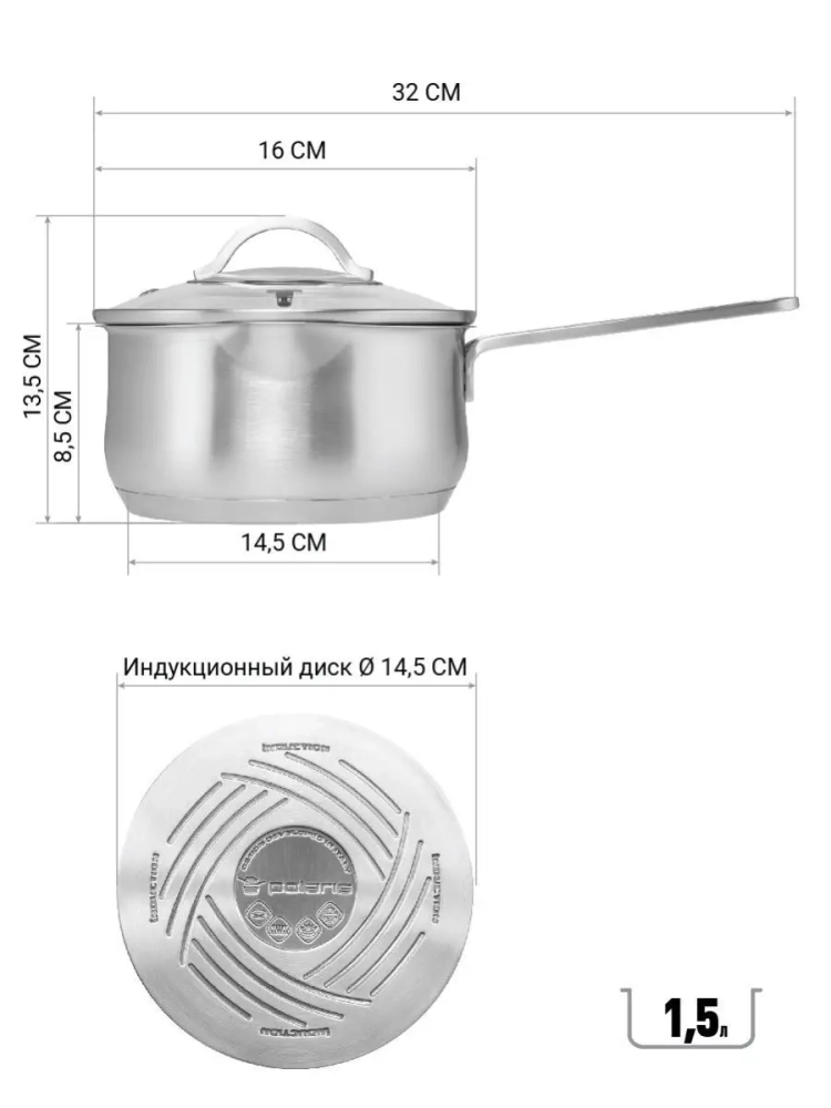 Ковш из нержавеющей стали совместим с газовыми, галогенными, электрическими, индукционными и керамическими стеклянными варочными панелями. Можно мыть в посудомоечной машине, высококачественная нержавеющая сталь с зеркальной отделкой легко очищается и не обесцвечивается.