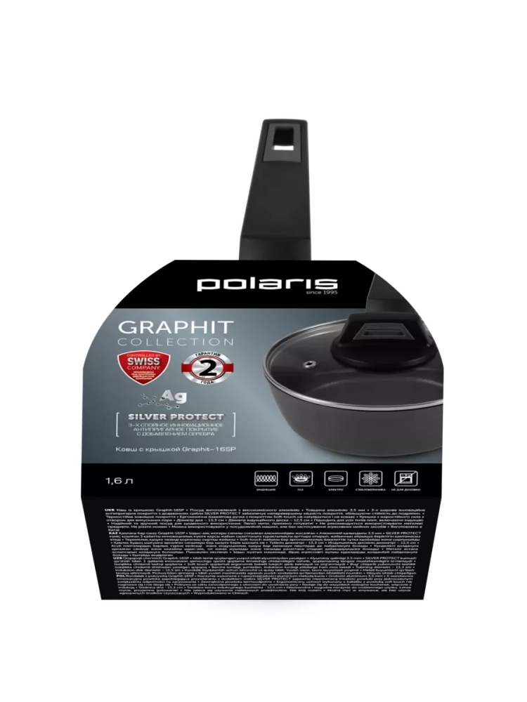Профессиональный ковш с крышкой Polaris Graphit-16SP - это уникальное сочетание современных инновационных технологий и интересного эстетичного дизайна, который гармонирует с любым интерьером и станет прекрасным дополнением вашей кухонной коллекции. Маленький многофункциональный помощник создан под строгим контролем швейцарской компании, соответствует европейским стандартам качества и не содержит вредных для здоровья веществ.