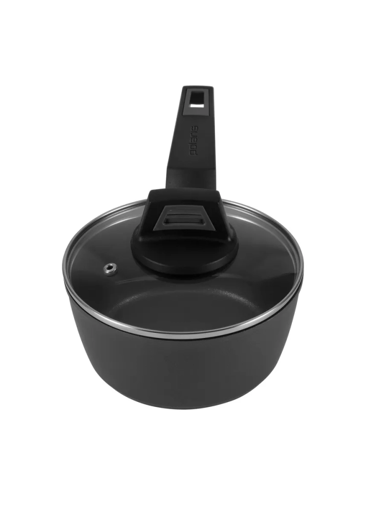 Сотейник идет в комплекте со стеклянной прозрачной крышкой (диаметр 16 см) из жаропрочного стекла с отверстием для выпуска пара.