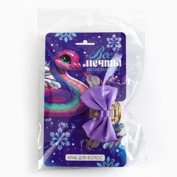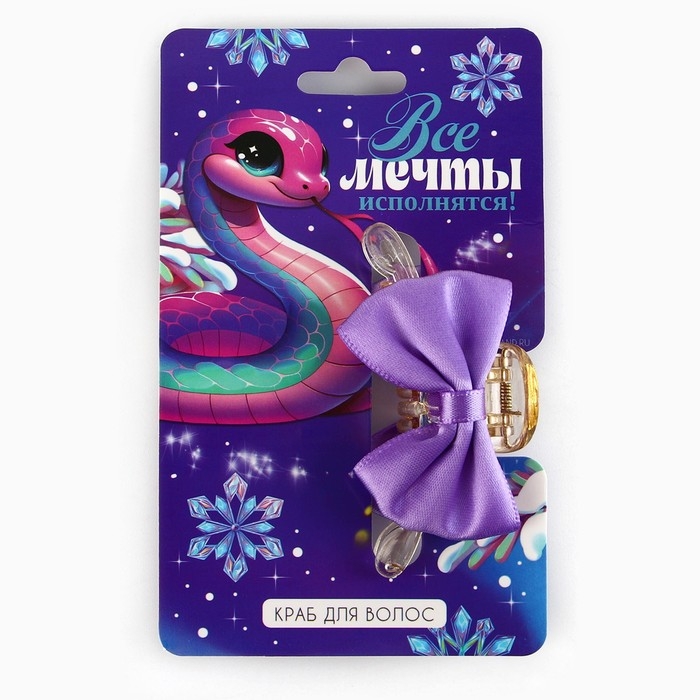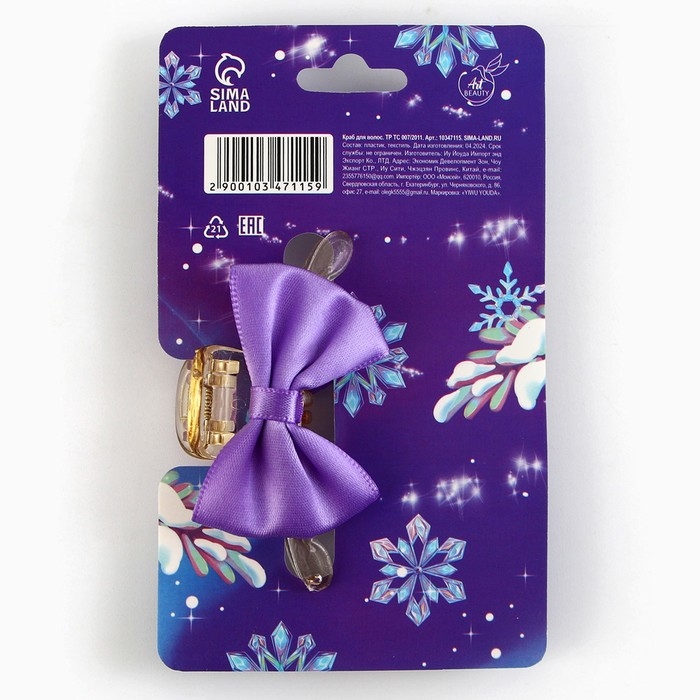 Краб для волос с текстильным декором новогодний «Все мечты исполнятся», на Новый год, 6 х 38 х 32 см