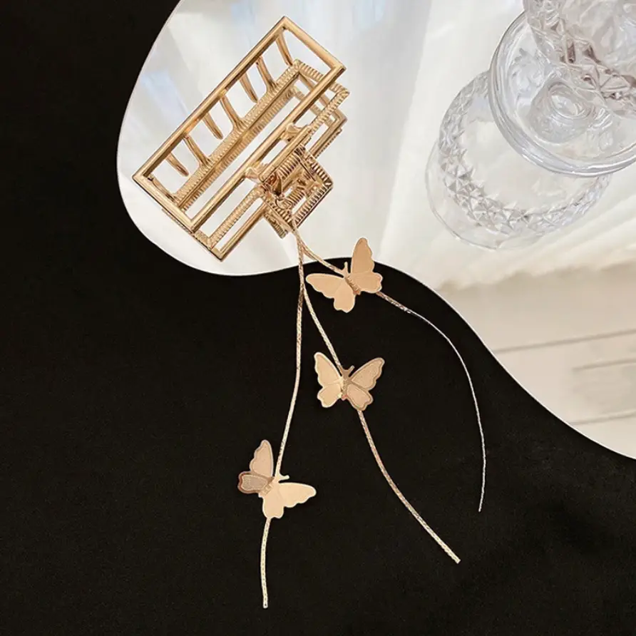 Заколка-автомат для волос "Розмари" бабочка волна, 7 см, золото