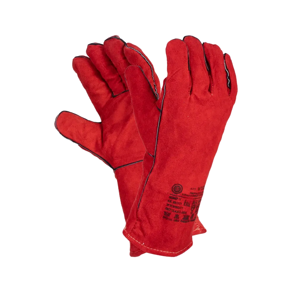 Краги спилковые сварщика пятипалые красные утепленные Трек-12, Fort 1013