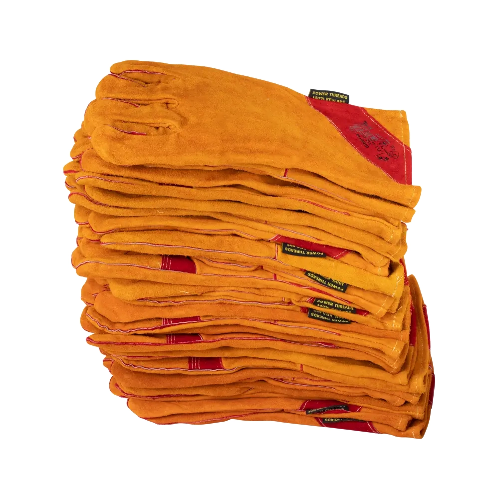 Особопрочные перчатки сварщика (краги) Siberia (Сибирь) T12-11-ru для защиты от механических воздействий и повышенных температур из цельного спилка, пятипалые, с подкладкой из брезента и хлопка, длиной 350 мм (+10/-5мм). Спилок КРС специально отобранный для серии Siberia - только спинная часть шкур, прошедших предварительный отбор, спилок однородный, сорт АВ (1,4+/– 0,2 мм), шлифованный, желтого (золотого) цвета. Швы — оригинальная нить Кевлар, усилены вставками из кожи, на ладонной части и большом пальце дополнительный слой из спилка красного цвета. Флисовая подкладка из хлопка на кистевой части и льняная (брезент) в области манжета (краги), в серии Siberia, полностью прошита по периметру , что обеспечивает лучшую защиту и высокий комфорт. Перчатки сварщика Siberia обеспечивают высокую механическую защиту, защиту от повышенных температур - открытого пламени, искр и брызг расплавленного металла, высокий комфорт использования, предназначены для проведения сварочных работ, работ связанных с интенсивными механическими нагрузками в условиях повышенных температур, работ с металлом, рекомендованы для продолжительного ношения. Размер 10,5.