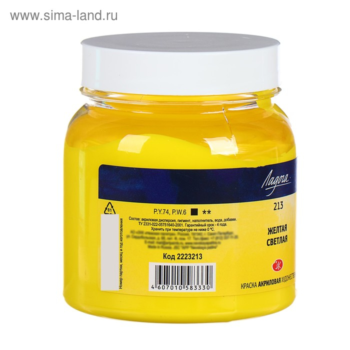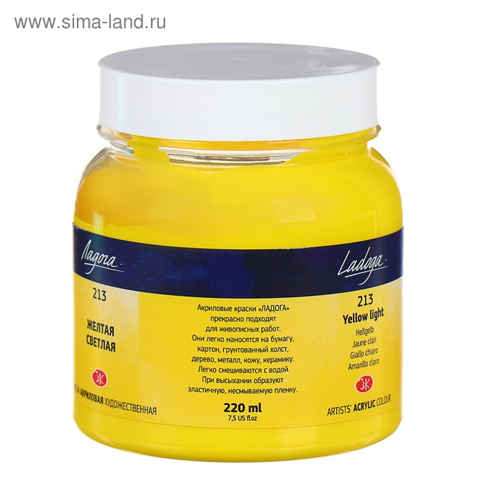 Краска акриловая художественная в банке 220 мл, ЗХК "Ладога", жёлтая светлая, 2223213
