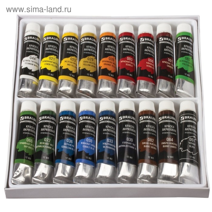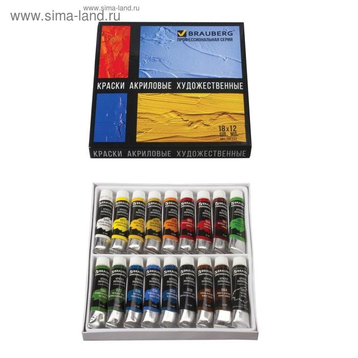Краска акриловая в тубе, набор 18 цветов х 12 мл, BRAUBERG ART CLASSIC, профессиональная серия, 191123