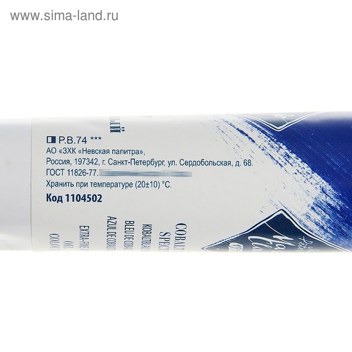 Краска масляная в тубе 46 мл, ЗХК "Мастер-класс", кобальт синий спектральный, 1104502