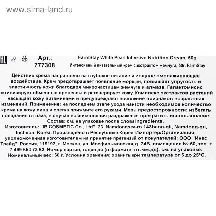Крем для лица FarmStay «Питательный», с экстрактом жемчуга, 50 мл