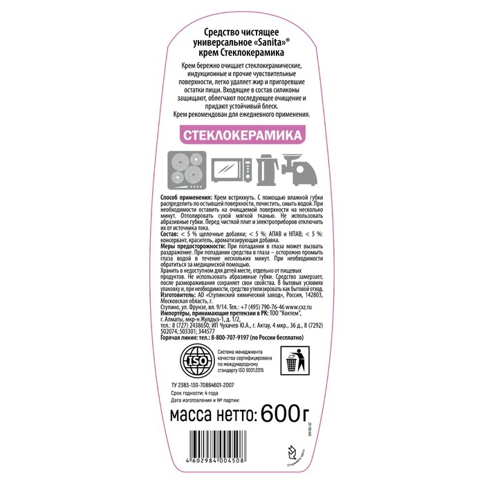 Крем Sanita для стеклокерамики, 600 мл