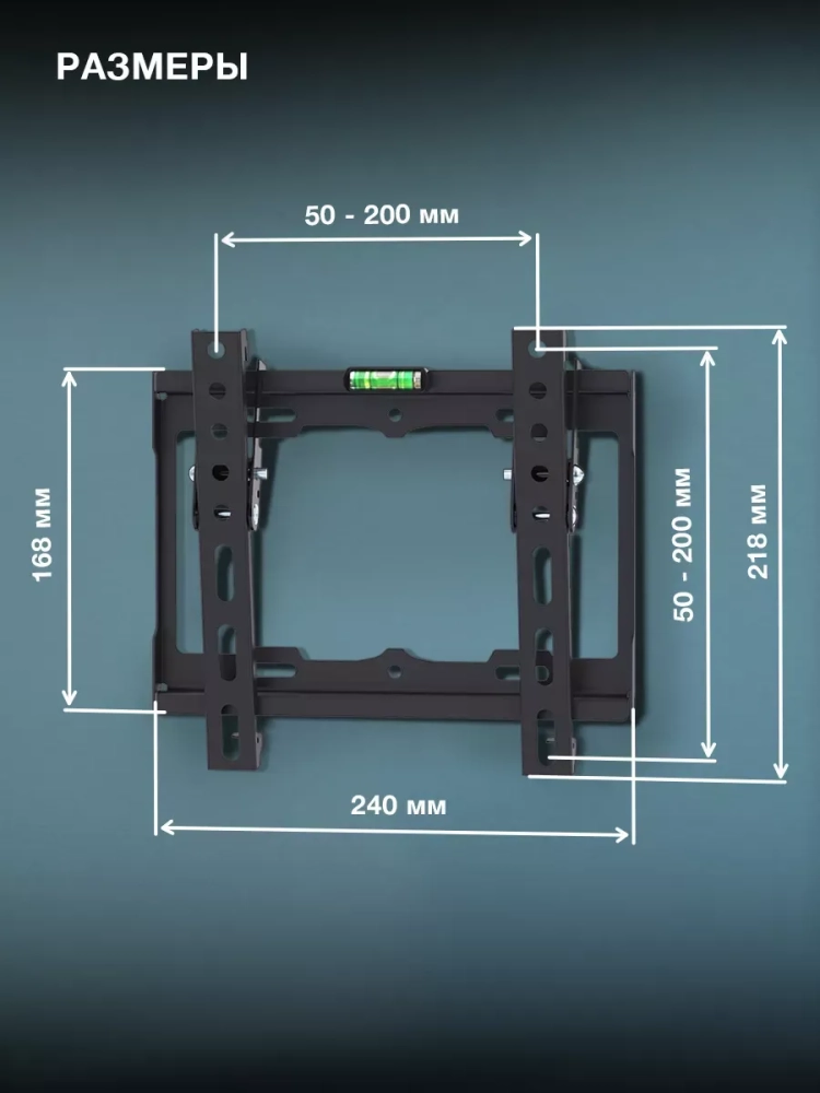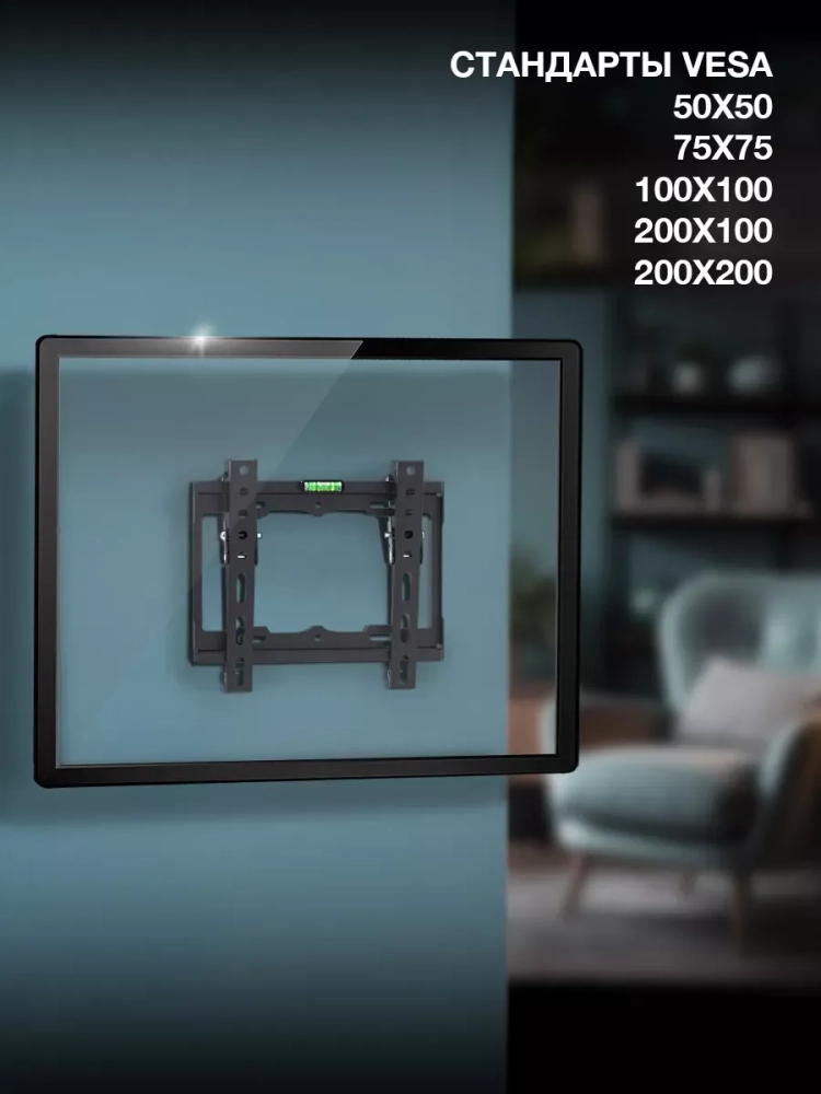 Черный наклонный кронштейн Hyundai GL-T1 позволит закрепить на стене любую модель телевизора с диагональю экрана 15-49 дюймов и поддержкой креплений VESA 50x50 – 200x200. Надежная рамочная конструкция из прочной стали способна выдержать монитор весом до 25 кг.