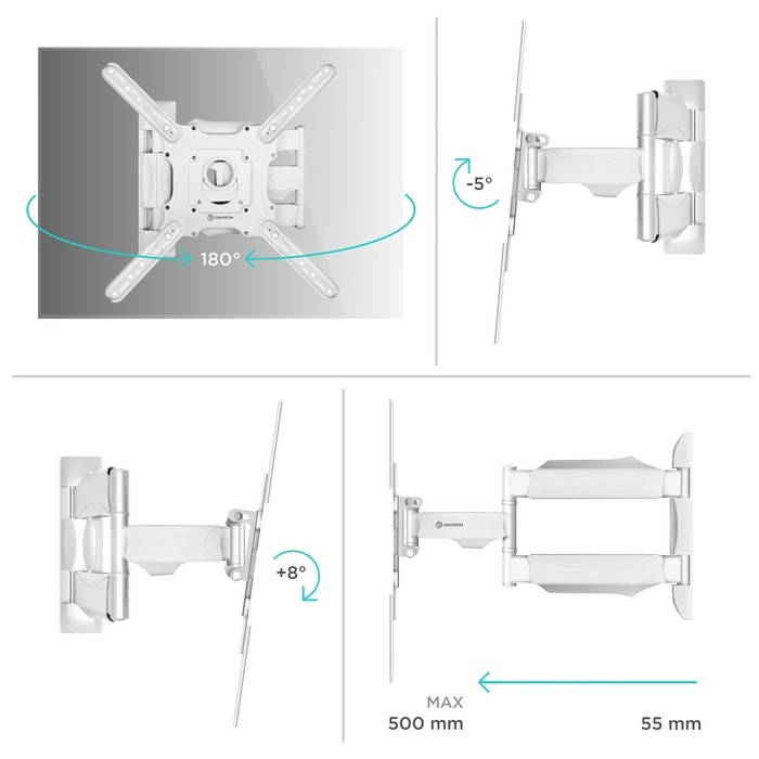Кронштейн ONKRON M4, для ТВ, наклонно-поворотный, 32"-65", 55-500 мм от стены, белый