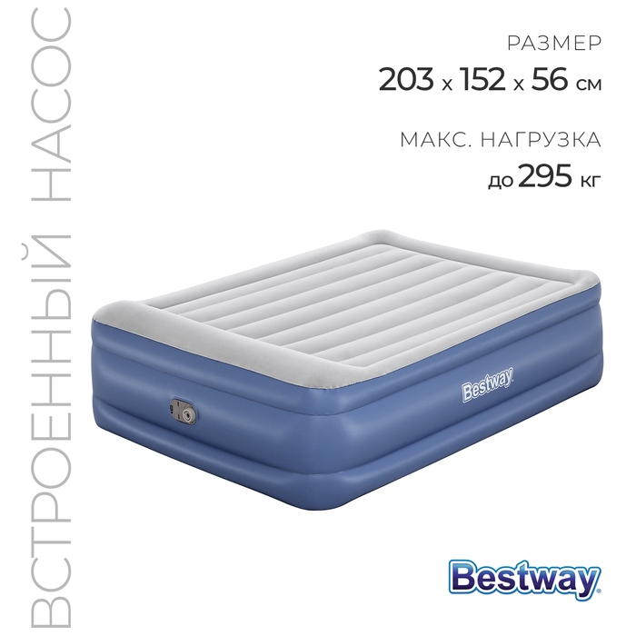 Кровать надувная Bestway Queen, 203×152×30 см, со встроенным электронасосом, 67836