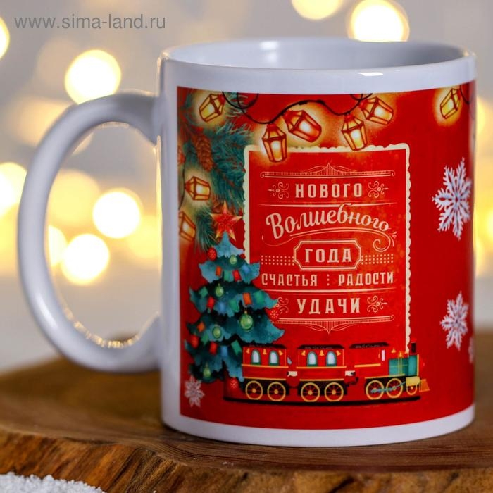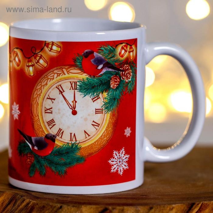 Кружка новогодняя, сублимация "Нового Волшебного Года!" снегирь, часы
