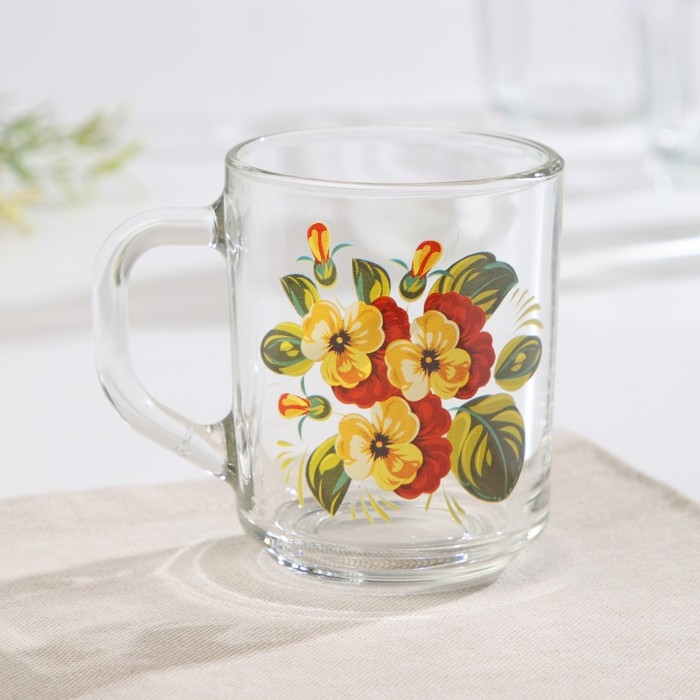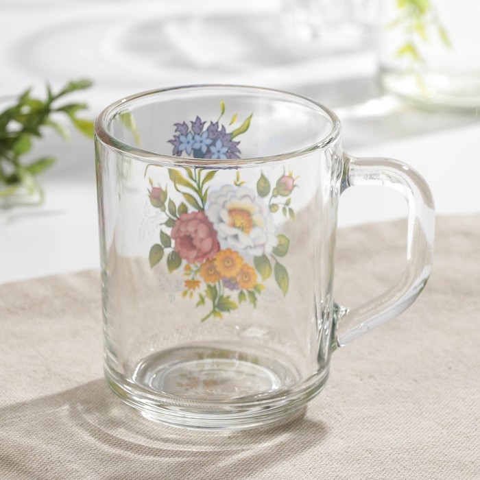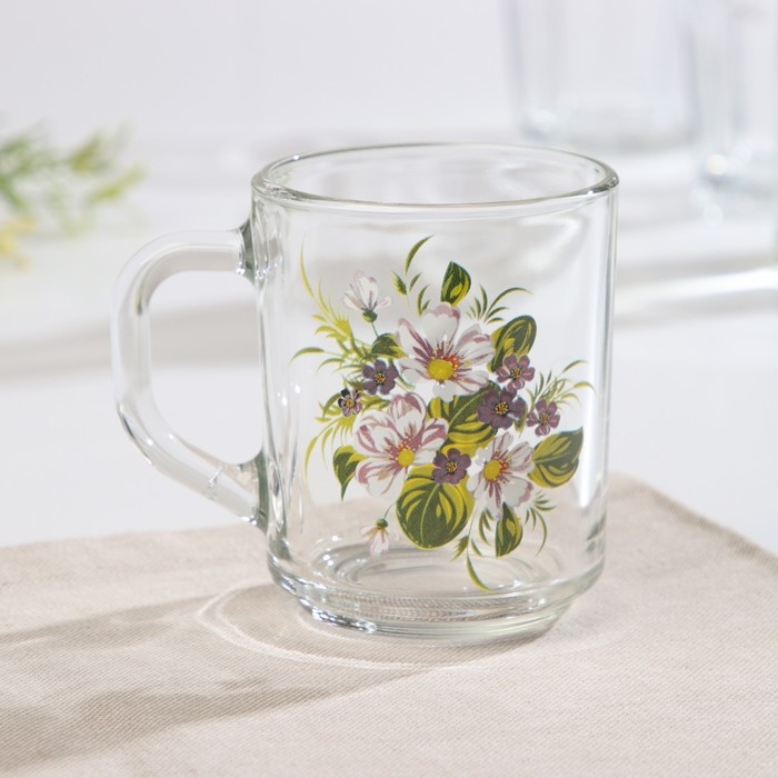 Кружка стеклянная «Букетик», 200 мл, рисунок МИКС