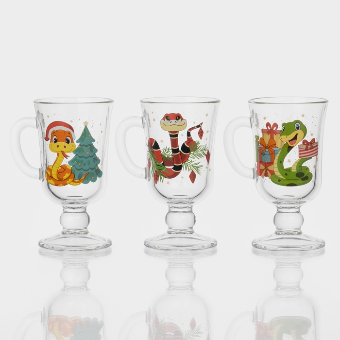 Кружка стеклянная для глинтвейна «Новогодние змейки», 200 мл, МИКС