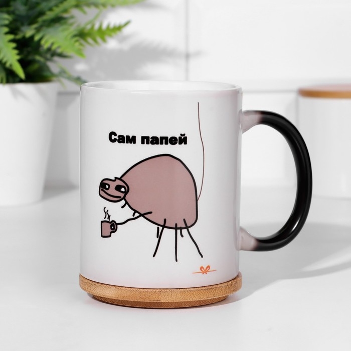 Кружка изготовлена из керамики. Рисунок нанесён методом сублимации, при котором краска проникает в верхний слой изделия, поэтому изображение получается стойким.