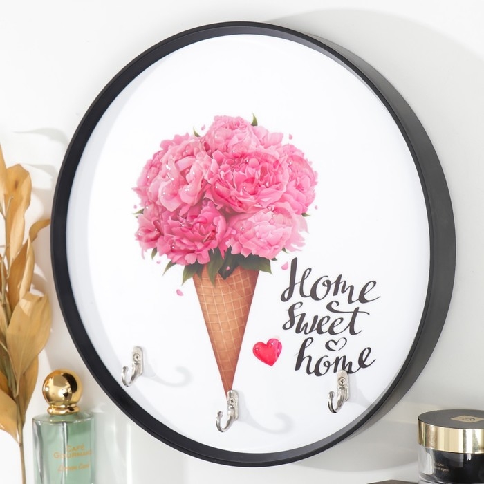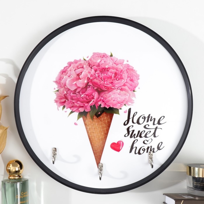 Крючки декоративные 3 крючка "Пионы в вафельном рожке" 30х30 см