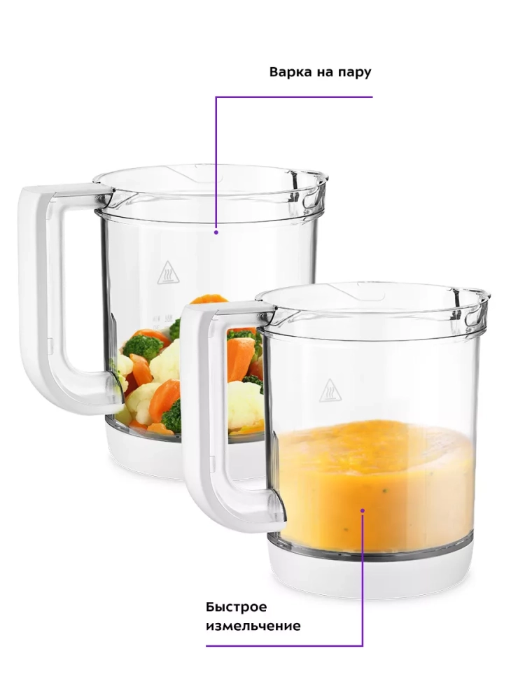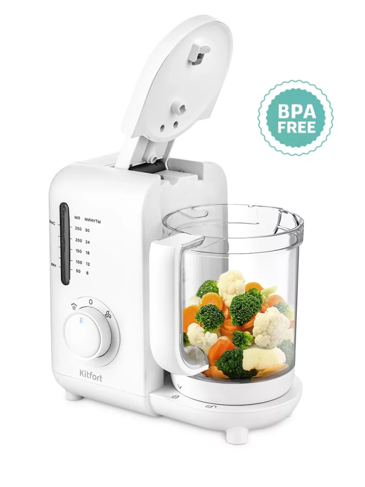 Кухонный блендер измельчитель с чашей 500Вт КТ-2320 от kitfort — это многофункциональный бытовой прибор, который станет незаменимым помощником на вашей кухне. Этот мощный электрический блендер сочетает в себе функции пароварки и измельчителя, что позволяет готовить разнообразные блюда на пар из овощей и других продуктов. Благодаря этому паровому устройству вы сможете сохранить все витамины и полезные вещества в приготовленных блюдах. Чаша устройства обеспечивает равномерное прогревание продуктов за счет постоянной циркуляции пара, что гарантирует качественное приготовление пищи без риска пригорания или переваривания. По окончании процесса приготовления прибор автоматически отключается, обеспечивая безопасность использования. Для дополнительной безопасности эксплуатации блендер работает только с установленной чашей и закрытой крышкой. Резиновые ножки предотвращают скольжение прибора на столе во время работы, обеспечивая его устойчивость. Мытье частей прибора не вызывает затруднений: ножевой блок полностью разбирается для удобного промывания всех элементов по отдельности. Это значительно упрощает уход за устройством после использования. Компактный дизайн блендера позволяет ему легко вписаться в интерьер любой кухни, а его функциональность делает процесс приготовления детского питания быстрым и простым. В комплект поставки входит стакан для смешивания, что добавляет удобства при использовании данного кухонного устройства.