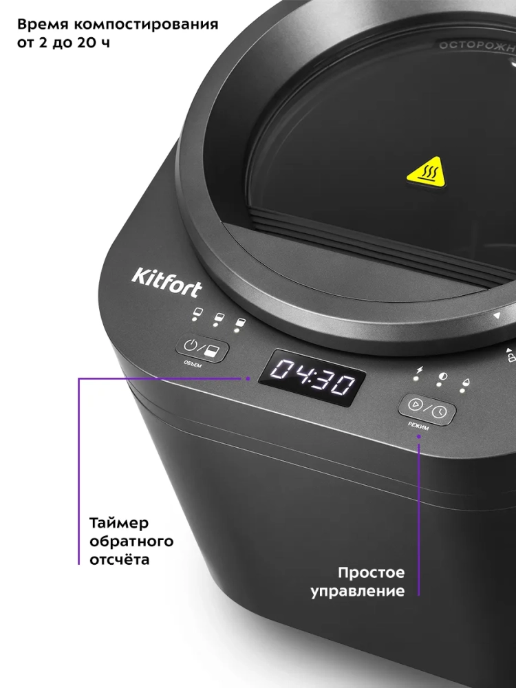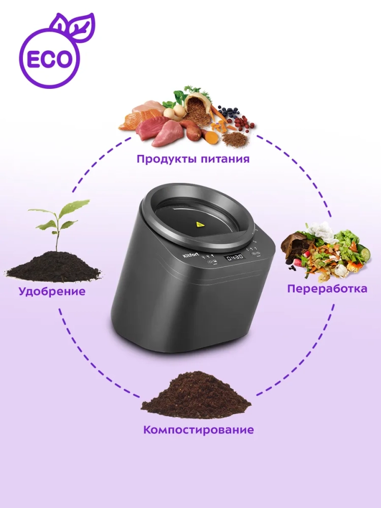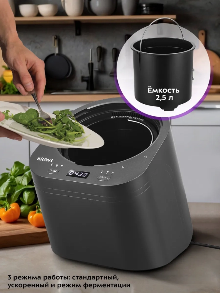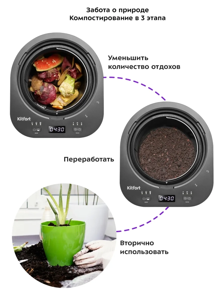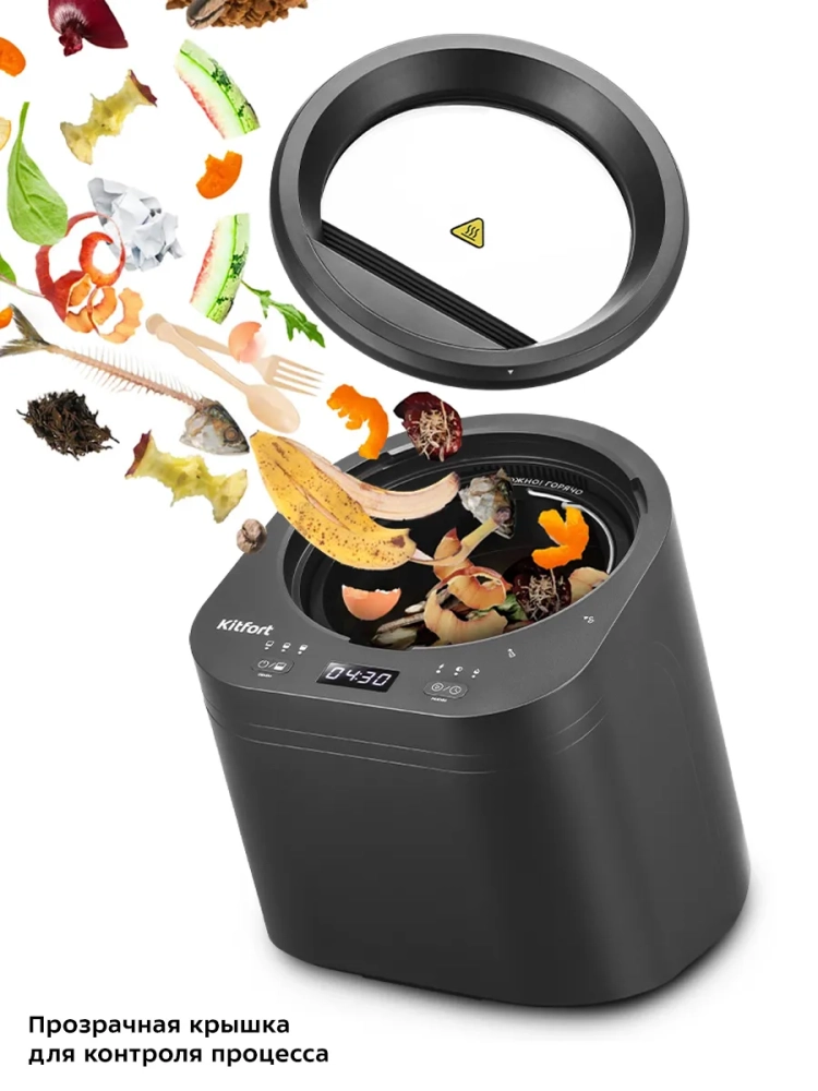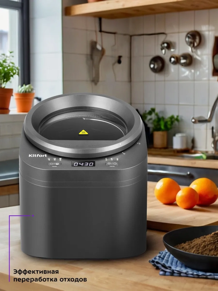 Кухонный компостер Kitfort КТ-6394 — устройство, которое уменьшает объем пищевых отходов и позволяет использовать их для удобрения почвы.