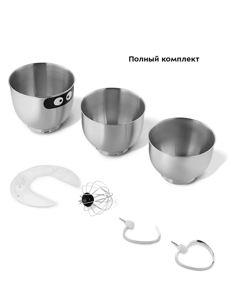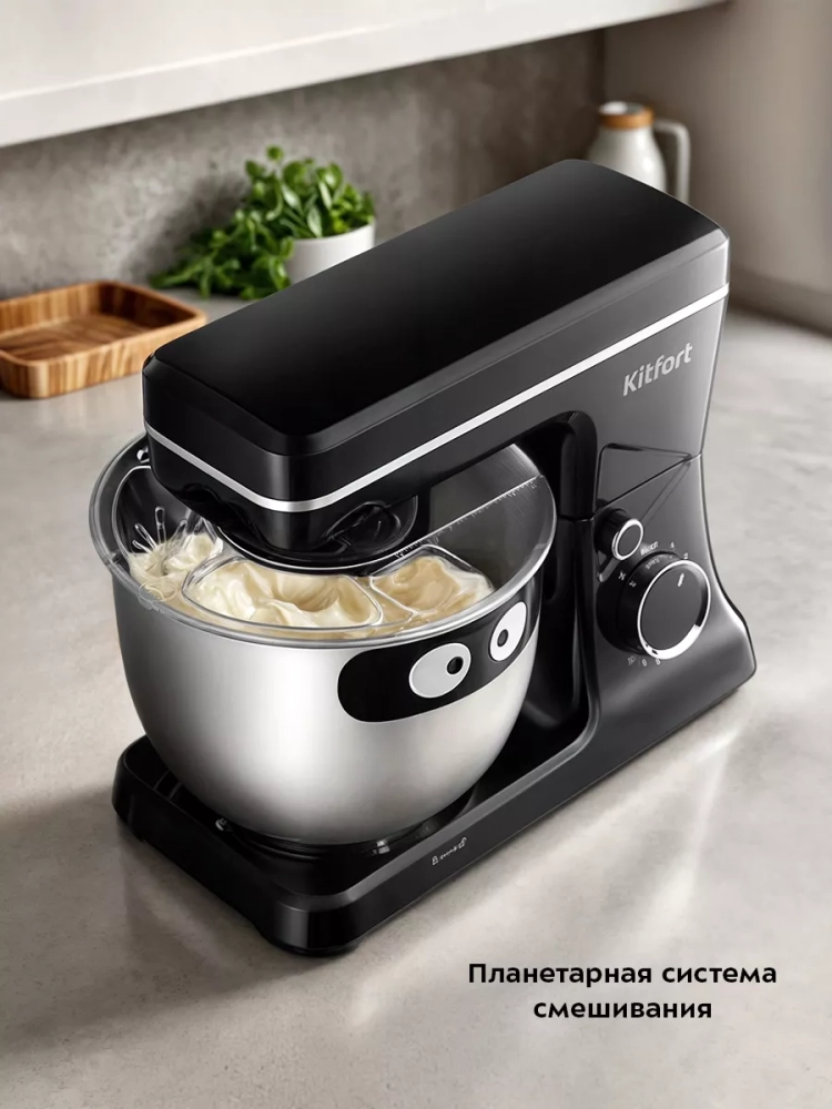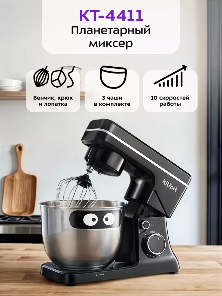 Планетарный миксер кухонный электрический КТ-4411 от Kitfort — это идеальный помощник на вашей кухне. Этот профессиональный прибор мощностью 1500 Вт способен справиться с любыми задачами, будь то взбивание яичных белков, приготовление соусов или замешивание теста для пельменей и пирогов. Идеальный подарок на любой случай: на Новый год, 23 февраля, 8 марта, день рождения, свадьбу или юбилей! Мощный миксер оснащен тремя чашами из нержавеющей стали объемом 3, 4 и 5 литров. Эти прочные чаши позволяют смешивать даже горячие ингредиенты без риска повреждения. В комплект входят три насадки: венчик для взбивания белков и сливок, насадка для смешивания негустых ингредиентов и крюк для замешивания густого теста. Каждая насадка тестомешалки предназначена для выполнения определенных задач, что делает этот миксер универсальным инструментом для готовки на вашей кухне. Миксер работает в полностью автоматическом режиме: достаточно положить ингредиенты в чашу и выбрать нужную скорость работы из десяти доступных вариантов. Импульсный режим позволяет замешивать ингредиенты на максимальной скорости с частыми паузами, что особенно удобно при работе с плотными смесями. Безопасность использования обеспечивается системой автоматического отключения при перегреве или откидывании моторного блока. Это бытовой прибор нового поколения, который сочетает в себе надежность и удобство эксплуатации. Этот крутой планетарный миксер — не просто техника для кухни; это ваш личный тестомес! Он идеально подходит как для домашнего использования, так и в качестве профессионального оборудования благодаря своей мощности и функциональности.
