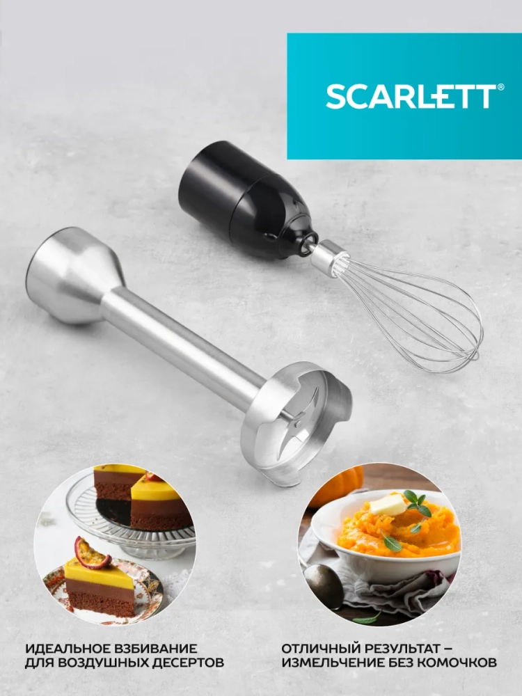 Погружной блендер Scarlett SC-HB42F61 оснащён мощным мотором высокой мощности 1100 Вт, к нему прилагается мини-измельчитель, мерный стакан и венчик, с помощью которых можно измельчать продукты, готовить тесто, взбивать крем, выполнять другие задачи. Цельнометаллическая погружная часть блендера изготовлена из прочной нержавеющей стали собственной марки Steel Pro, а благодаря эргономичной форме корпуса прибор будет особенно хорошо лежать в ладони. Выберите одну из двадцати пяти скоростей простым поворотом переключателя. Начинайте с низкой скорости, чтобы избежать брызг и используйте режим Turbo в конце использования для получения идеального результата. Стационарный ручной бьюти мини блендер измельчитель со стаканом и венчиком . Блендерный набор 3 в 1 с венчиком со стаканом с чашей
