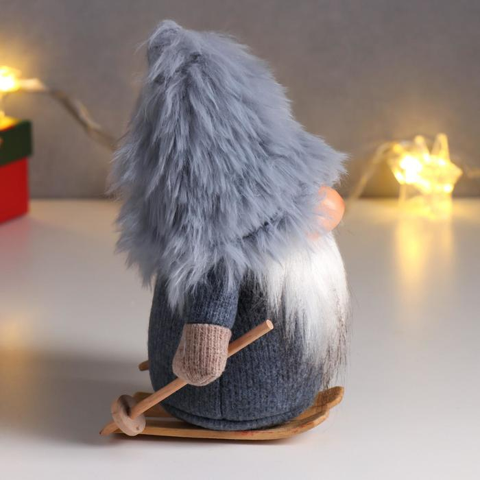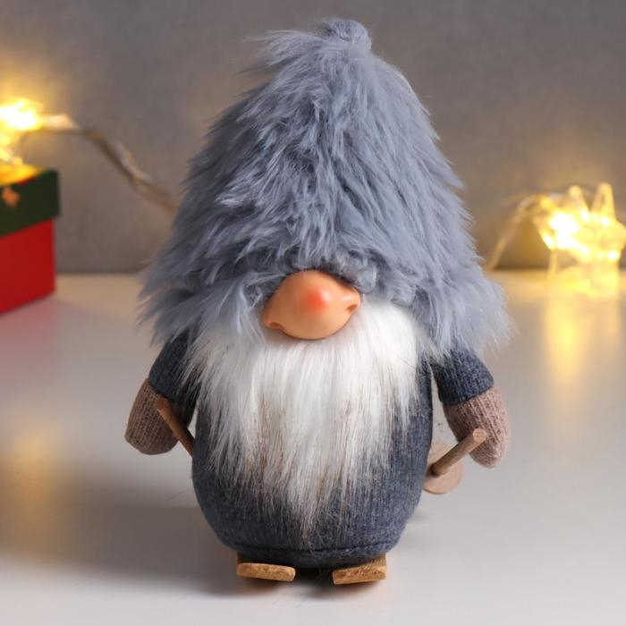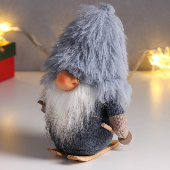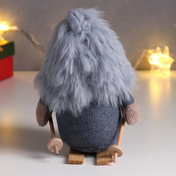 Кукла интерьерная "Дед Мороз в сером меховом колпаке, на лыжах" 21х11х13 см