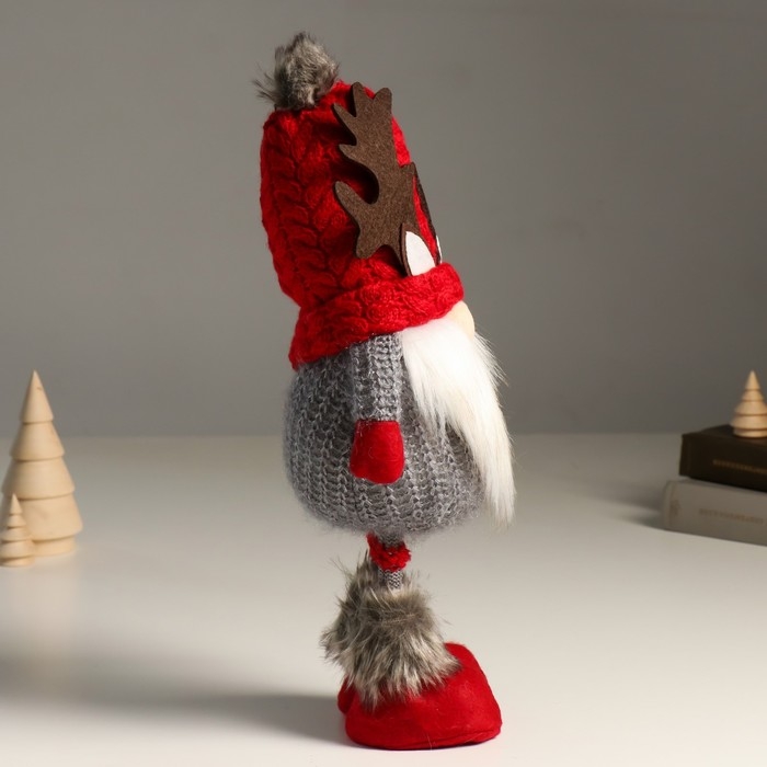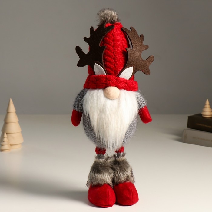 Кукла интерьерная "Дед Мороз в шапке с рожками оленя" 38 см