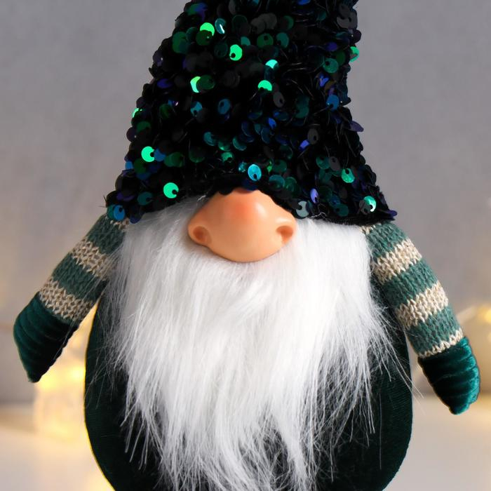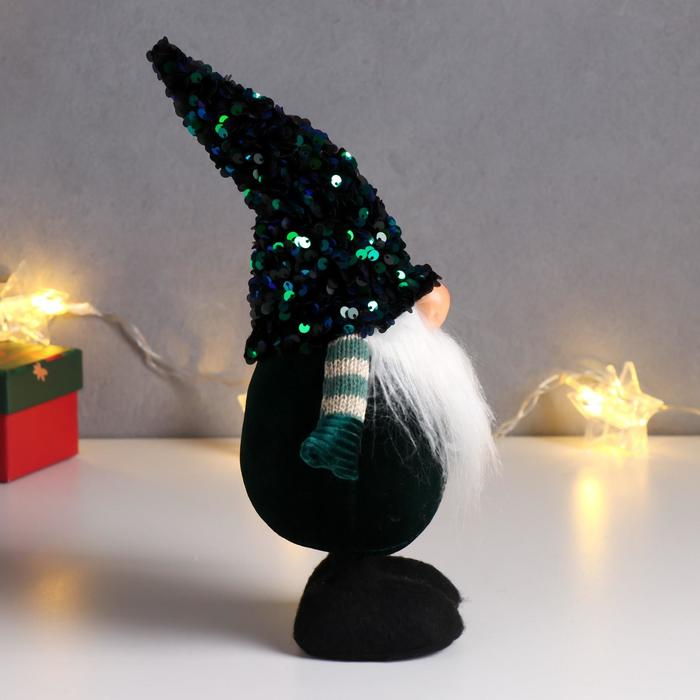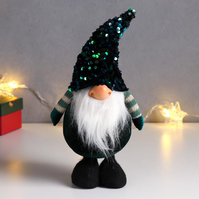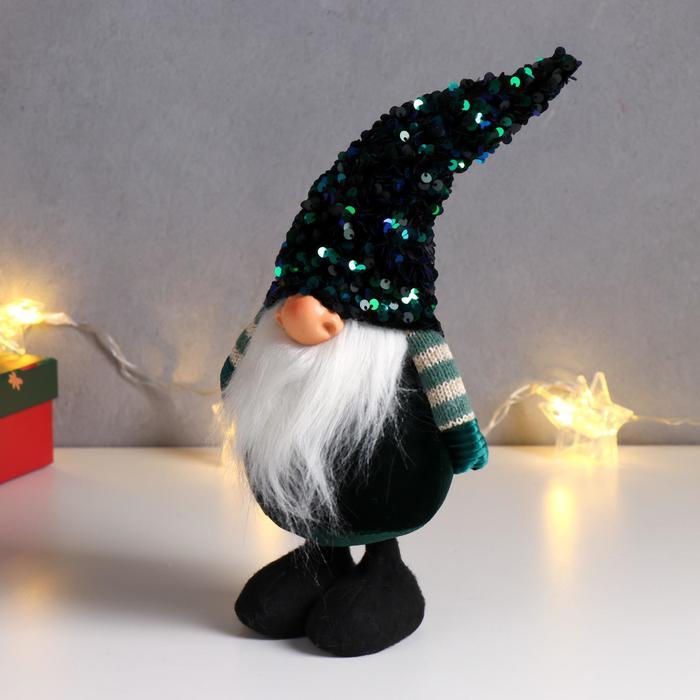 Кукла интерьерная "Дед Мороз в зелёном колпаке с пайетками" 33х9х14 см