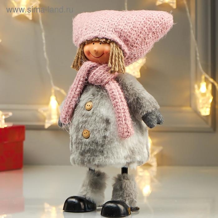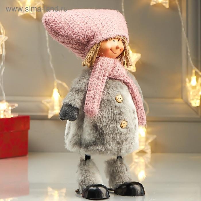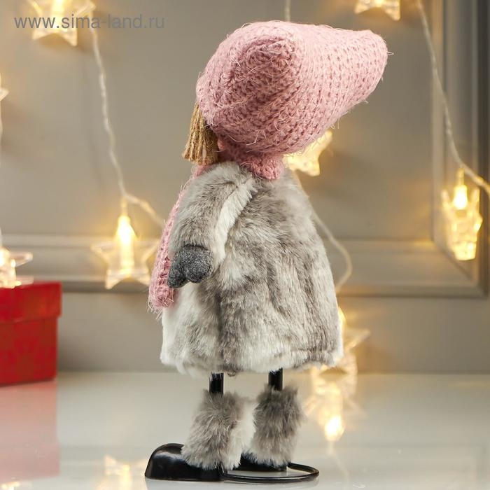 Кукла интерьерная "Девочка в розовой шапке с ушками и белой шубке" 27х10х17 см