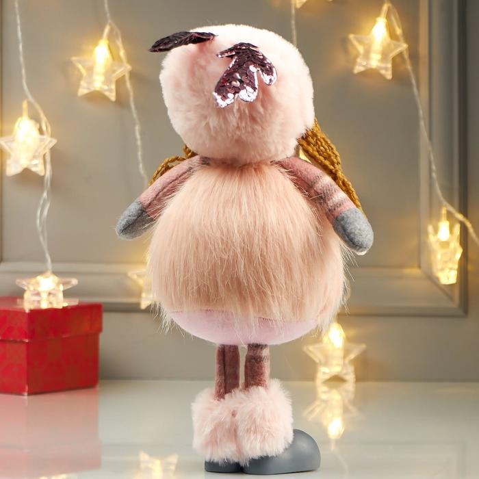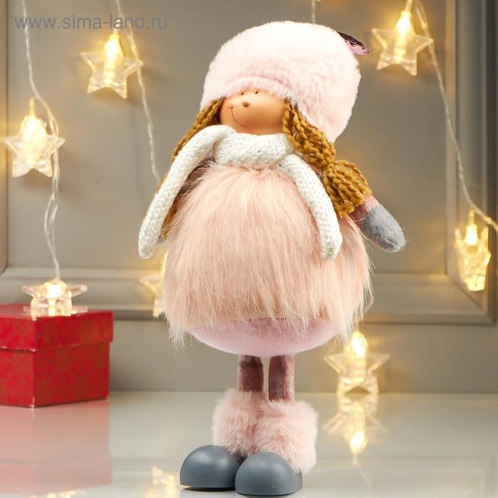 Кукла интерьерная "Девочка в розовой шубке и в шапке с ушками" 38х11х16 см
