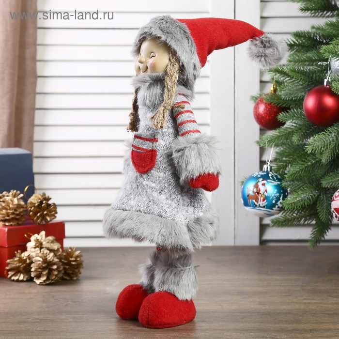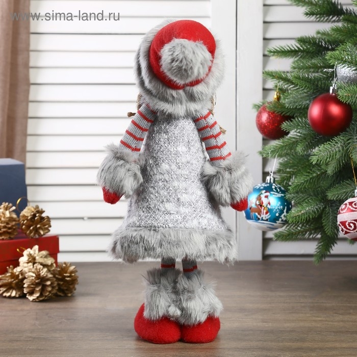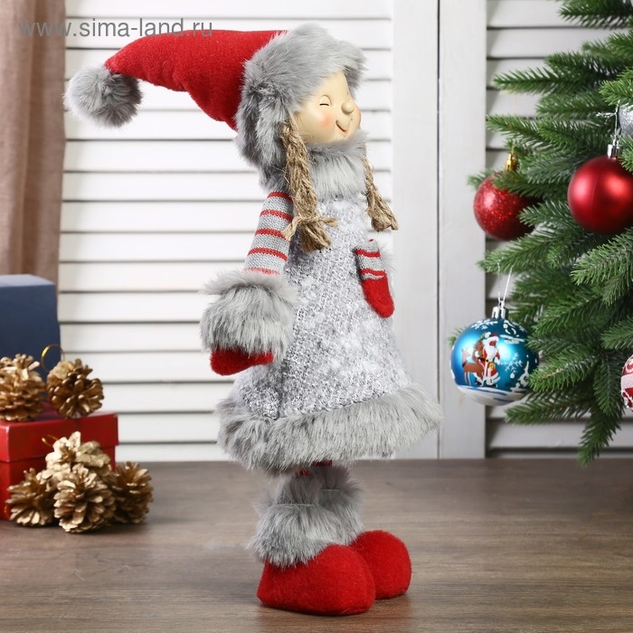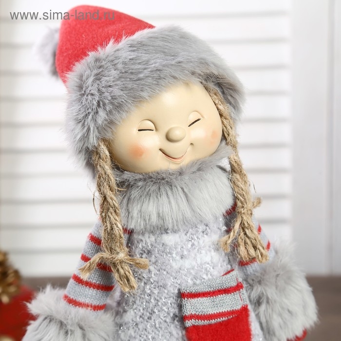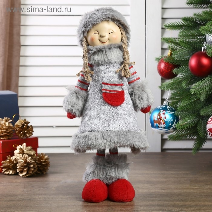 Кукла интерьерная "Девочка в сером платьице с меховой отделкой" 46 см