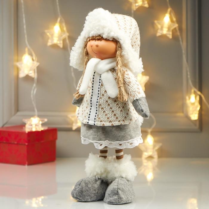 Кукла интерьерная "Девочка в зимнем наряде и в шапке-ушанке" 52х10х15 см