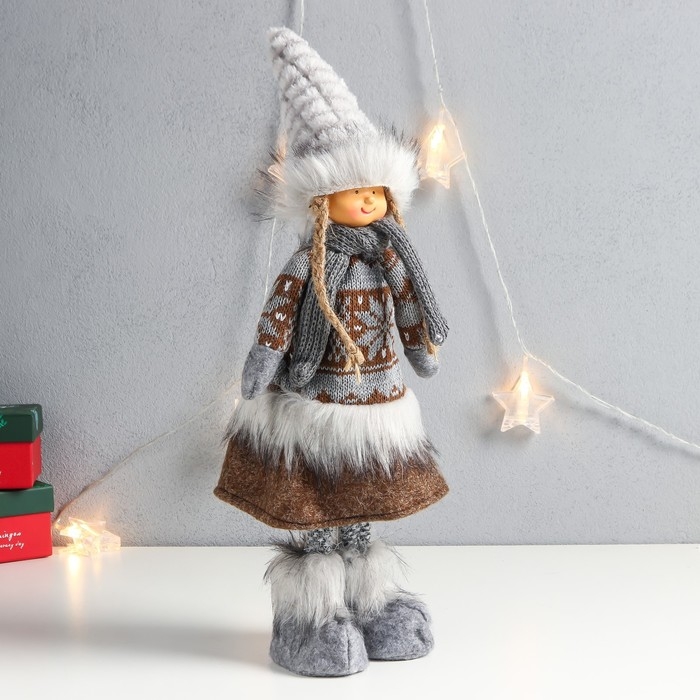 Кукла интерьерная "Девочка в зимнем наряде со снежинками" 45х16х9 см