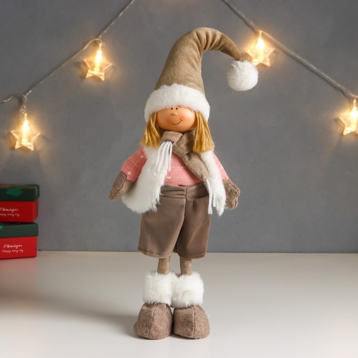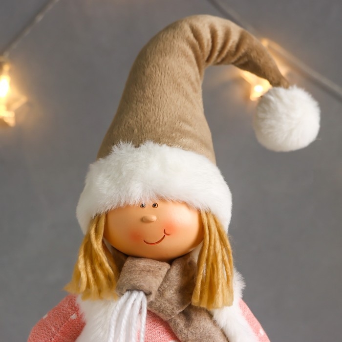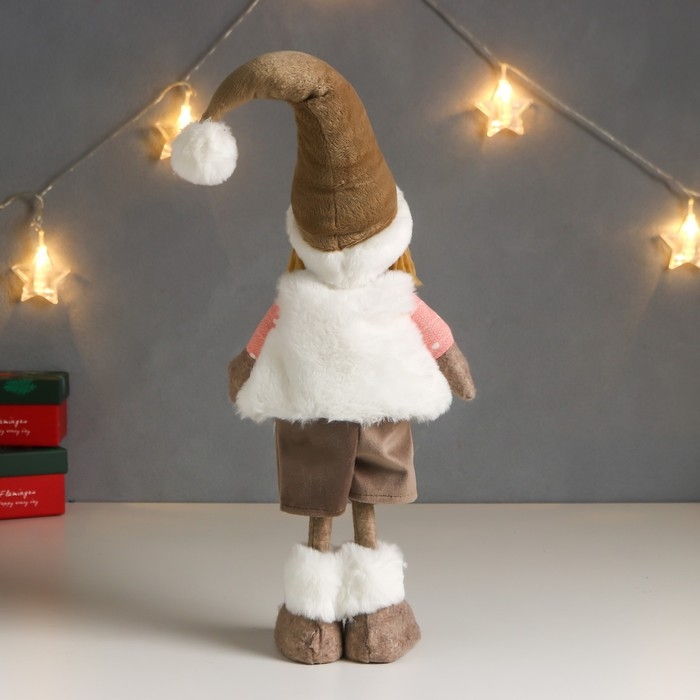 Кукла интерьерная "Мальчик в белой жилетке и бежевом колпаке" 48х10х15 см
