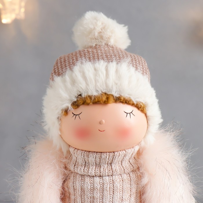 Кукла интерьерная "Малышка в меховом жилете и в шапке с помпоном" 27х9х12 см