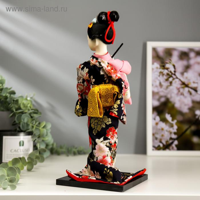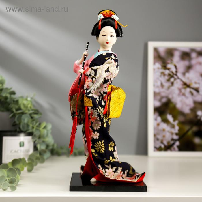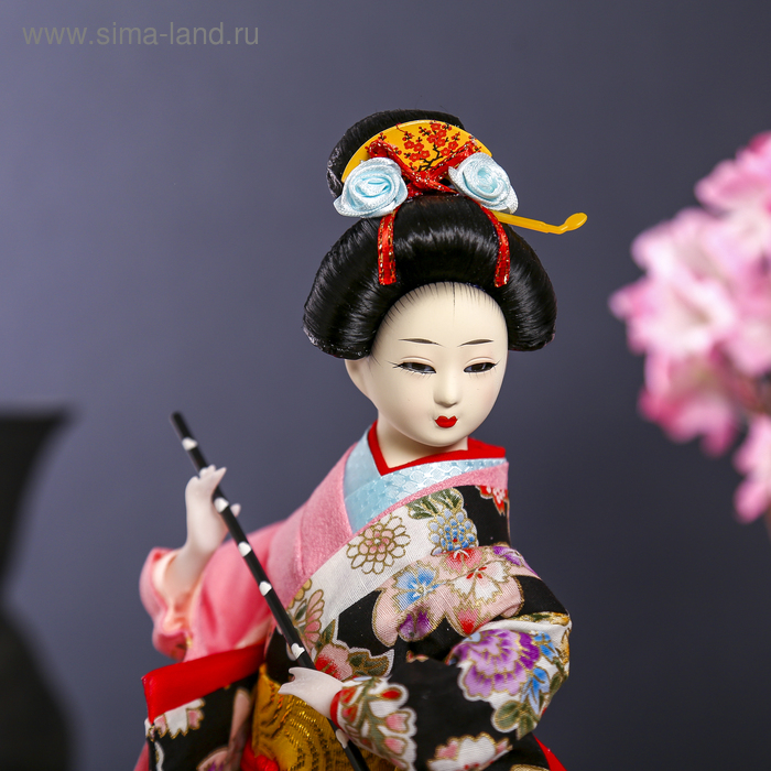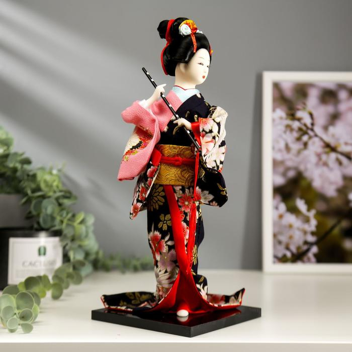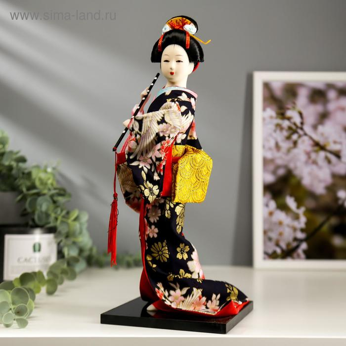 Кукла коллекционная "Японка в цветочном кимоно с флейтой" 30х12,5х12,5 см