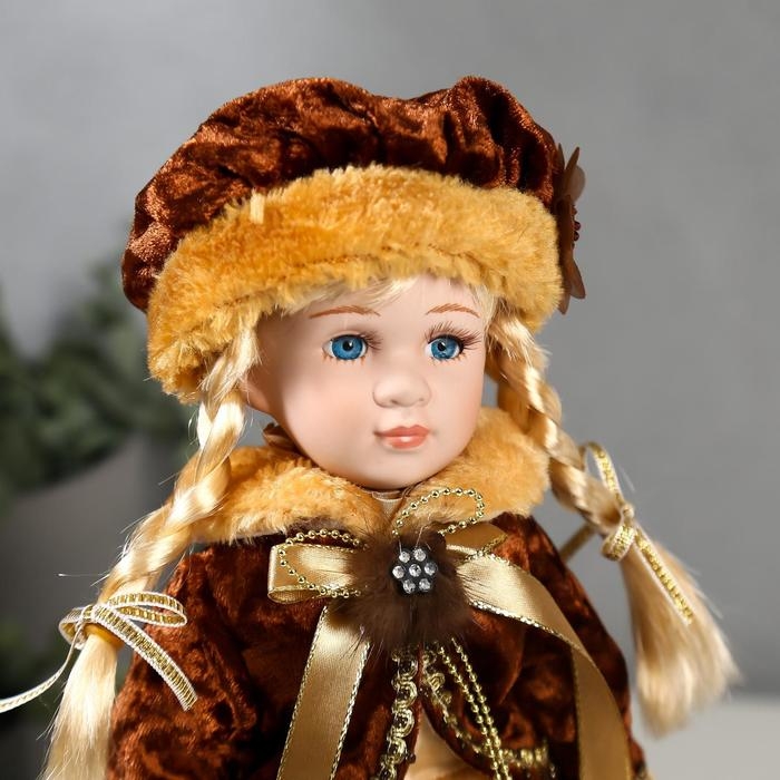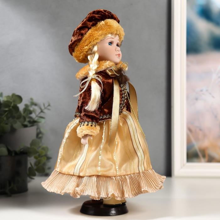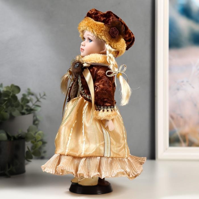 Кукла коллекционная керамика "Лида в золотом платье и бархатной шубке" 30 см