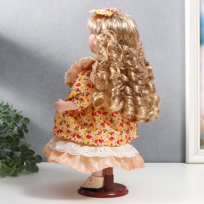 Кукла коллекционная керамика "Тося в кремовом платье с цветочками, с бантом в волосах" 30 см 75861