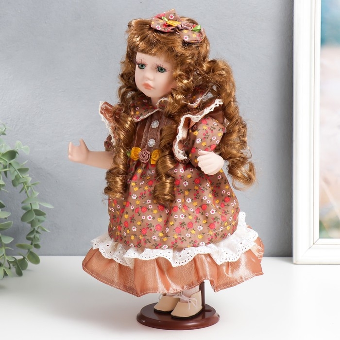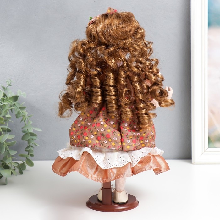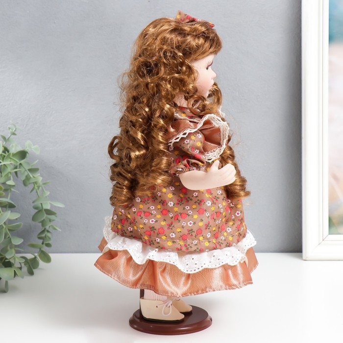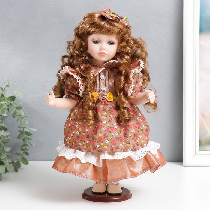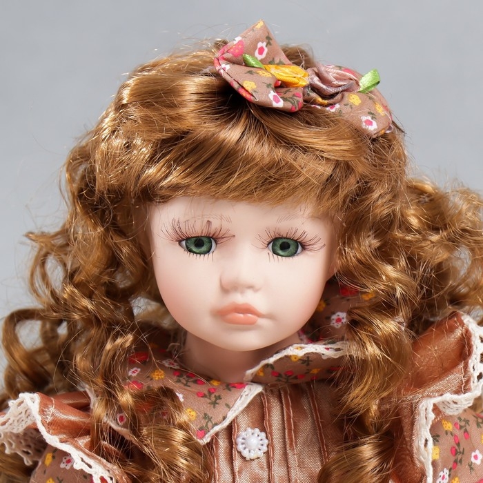 Кукла коллекционная керамика "Тося в платье с мелкими цветочками, с бантом в волосах" 30 см 758617